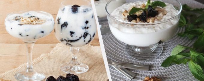 Den läckra kombinationen av gräddfil och katrinplommon kommer att vinna alla över. Dessert med katrinplommon och nötter royal / collage My, foto depositphotos.